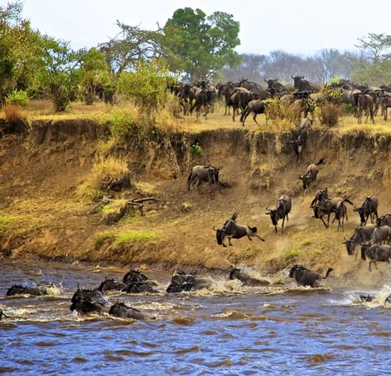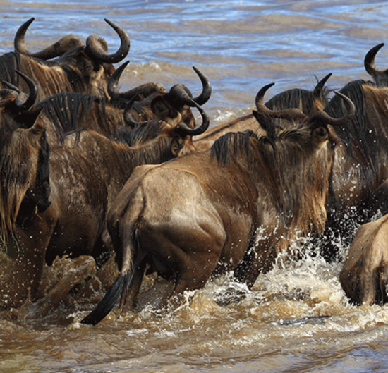The wildebeest migration river crossing beginning July, moves north and passes through the Lobo and the Wagakuria area en-route to Kenya's Masai Mara...